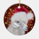 Hand painted portrait of this pretty Angora goat in her Santa Hat - on a deep crimson red background with sparkling gold snowflakes. Goat Christmas ornaments for your Holiday gift giving, Christmas tree or window ornaments- customize the date on back