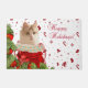 Angora cat with Christmas decoration and "Happy Holidays!" text.