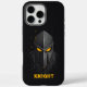 This iPhone case is for medieval history lovers. The design features a grumpy and angry looking knight with yellow eyes. You can personalize the text.