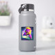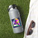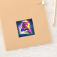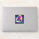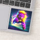 This sticker has an angry purple lion on it.