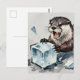 Angry otter breaking ice postcard