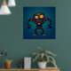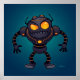 Vector cartoon illustration of an angry robot getting ready for battle. This mean and nasty robot is dark gray with orange eyes and highlights.