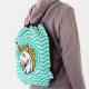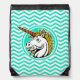 Angry Unicorn; Aqua Green Chevron Drawstring Bag
