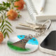 Looking for a new geology-themed keychain? This one features a cartoon drawing of a cute, erupting volcano with an angry scowl on its face. He stands tall over a green landscape, blasting rock and ash into the sky.