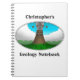So you find you need to take notes in science class? This 80-page notebook features a cartoon drawing of an angry volcano in the process of erupting, throwing rock and ash into the sky. The default text reads "Christopher's Geology Notebook," but can you can easily personalize it with name and subject, for yourself or for others.