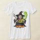 Stand out this spooky season with this Halloween design featuring a cartoon witch brewing a glowing green potion in a bubbling cauldron over blazing fire, surrounded by magical smoke and sparks.