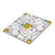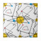 Black linear angles and circles in primary colors of red, yellow and blue make up this contemporary retro pattern reminiscent of Mid Century Modern design and the Atomic Age of the 1950's and 1960's.