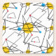 Black linear angles and circles in primary colors of red, yellow and blue make up this contemporary retro pattern reminiscent of Mid Century Modern design and the Atomic Age of the 1950's and 1960's.