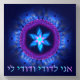 Intertwined pink and blue fractal Stars of David on a dark background with Hebrew text reading, "אני לדודי ודודי לי" (Ani L'Dodi V'Dodi Li - I am my beloved and my beloved is mine).