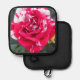 I ordered this product for my Mom as a gift and to check the product quality. It is a good thickness and great quality I am happy to report. She also advised that it will do a wonderful job in protecting her counters from hot pots and will last a really long time- durable. Printing is as expected and color is exactly her color of orange.