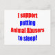 I support putting animal abusers to sleep! If you hate animal abuse and want to send a message to those who abuse animals and to our politicians who help to make the anti-animal abuse laws this design is for you.