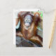 A cute baby orangutan orphan in Kalimantan. Uh oh, somebody couldn't "hold it" any longer and did a little pee pee on the bench during play time. The expression on this little orangutan orphan's face seems to show that now he wishes his bench weren't all wet. The human caretaker will be grabbing a towel and some water and rinsing this off.