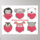Animal Character Forever Friends Hearts Kids Poster. Each animal is holding a heart. Give it to a friend who is moving away, or change the text and decorate it in your child's room.