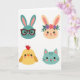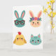 This design shows four stylized animal faces on a white background, arranged in a neat 2x2 grid that feels balanced and friendly 🌷. Soft teal, warm peach, sunny yellow, and small touches of pink and purple set a gentle, cozy tone. In the top-left square, a teal long-eared animal looks out from dark-rimmed glasses, as if sharing a knowing glance with a close friend 🐰. The top-right portrait shows a peach long-eared animal wearing a small flower wreath, with a sweet, affectionate look that suggests quiet romance. In the bottom-left, a round yellow chick with a red crest seems to beam with easy warmth, like it’s included in the group’s closeness. The bottom-right features a teal cat-like face with faint stripes and fine whiskers, gazing softly as if listening in on the others. There’s no visible headline text, and each portrait is framed by its own pastel square with rosy cheeks, dot eyes, and simple lines.