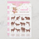 Purchase this editable card and enjoy high quality Teddy Bear Animal Gestation Game for your event! This is a card template, You can personalize the card, change the text as you wish! Baby Shower Activities! Rose Gold and Pink Balloons Guessing game. ANSWERS: Deer - 8 months, Kangaroo - 40 days, Rabbit - 1 month, Bear - 7 months, Camel - 14 months, Fox - 51 days, Puma - 3 months, Dolphin - 1 year, Lama - 11 months, Goat - 5 months, Elephant - 22 months, Cat - 2 months