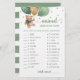 Purchase this editable card and enjoy high quality Teddy Bear Animal Gestation Game for your event! This is a card template, You can personalize the card, change the text as you wish! Baby Shower Activities! Sage Green guessing game. ANSWERS: Deer - D, Kangaroo - K, Rabbit - J, Bear - A, Camel - L, Fox - E, Puma - I, Dolphin - C, Lama - H, Goat - G, Elephant - F, Cat - B