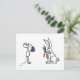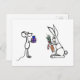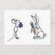 An adorable mouse and a cute rabbit are exchanging presents on this high quality postcard.