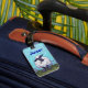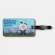Cute Sheep personal luggage tag features our fun black and white sheep character from our Animal Parade line standing in a grassy field with a white fence behind and an aqua blue textured sky digitally painted by our talented children's book artist, Traci Van Wagoner. For the fun side of you! See the sheep coming and going with this fun artwork of the sheep's head on the front along with your name above the cute ewe, and the sheep's behind on the back with all your information. Our fun sheep tags for bags make great gift for sheep lovers, animal lovers, farm animal lovers, barnyard animal lovers, ewe lovers, and lamb lovers of all ages. Join the Animal Parade and buy an Animal Parade sheep today. Don't just tag your luggage with this cute sheep art, drink from a sheep mug, wear a sheep apron and carry a sheep tote bag! Make some friends and collect the entire Animal Parade barnyard set of cute farm animals -- Pig, Sheep, Cow.