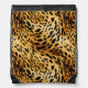 This drawstring backpack is shown in a cute black and tan multi color animal print.