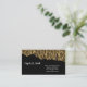 This business card is shown in a black and gold color faux glitter animal print tear art design.