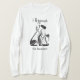 I love this shirt. I had written to the artist asking her if this picture was available on a shirt, and she wrote me back telling me where I could find the shirt. These shirts can be custom made to have a different saying. I loved this saying and went with it. The artist wrote me back later to tell me that she had seen my order go through. How's that for service? Pretty special. It's just as displayed. Perfect!