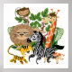Animal Safari design features jungle plants with a lion, zebra, tiger, giraffe, and monkey! Animal Safari design T-shirts, bodysuits, bibs, bags, mugs, cards, stickers, wall clocks, pillows, keepsakes, sleeves, cases, and more!
