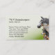 One of a range of five veterinarian business cards with a collage of different animals on green or blue backgrounds. This one is for mixed animal vet practices with a grey horse, a white calf, a dog , and a ginger cat. On the reverse is a dotted line template to allow space for writing appointments, though these lines can be changed to other information. Photography by ruralfrance.