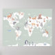 Animal world map poster