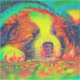 Colorful graphic portrait of a lovely sleeping Icelandic Sheepdog puppy