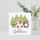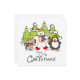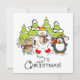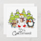 A cute, colorful Christmas holiday design flat card featuring a polar bear, penguin, and mouse all with scarves and ice skates with snow covered trees and text that reads It's Christmas!