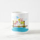 Cute cartoon style animals standing on a bridge. This design looks really effective on these Mug