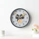 The size of the clock is dramatic and the abstract alcohol ink design is soothing and intricate at the same time. I chose the black frame that adds pop to the blue and gold design. The gold printing would be better in a slightly darker or larger font. I love it and I’m looking for just the right place in ny new apartment. I would recommend this clock for a personal gift or a present. I feel that the quality is excellent for the money! I’m a bit of a clock nut so I’m pretty particular about my purchases. The clock is larger in diameter than many if the clocks I have, so it stands out very well. I think a slightly darker printing color and a moderately larger size would best suit a professional decor or add more impact in a work place item.