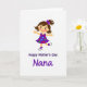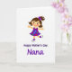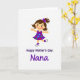 Designed with a bright digital illustration on a white background, the card centers on a stylized young woman with warm brown hair tied with a deep purple bow. She stands in a lively, mid-dance pose with arms stretched wide and one leg lifted, as if inviting someone close for a joyful spin ❤️. Her purple dress is covered in colorful polka dots in red, green, and blue, adding a cheerful rhythm to the scene. Her large eyes, lightly blushed cheeks, and wide smile suggest a sweet, friendly closeness, like she’s greeting someone she adores. Beneath the figure, two lines of text sit centered in purple, with the top line in a simple, easy-to-read style and the bottom line in a more flowing look. The spacing keeps the character as the main focus while the message reads clearly without crowding. A small touch of purple echoes through the bow, dress, and lettering, and the dotted pattern pops against the plain white space 🌼.