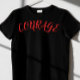 Here's an Anime & Manga Influenced design featuring the phrase "Courage" in a fiery font with red and glow effects. The blood red sky, dynamic speed lines give it a high-energy, action-packed vibe . 🌟✨