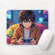 Mouse Pad for a boy who likes to play video games. Great for pre-teen and teens. Anime boy playing video games with a serious look.