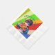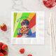 Personalized birthday boy paper napkins for a boy's pizza birthday party. Cute anime boy holding a piece of pizza with a colorful pop art background.