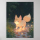 Capture the magic of the night with this enchanting illustration of a celestial fox. This adorable, multi-tailed creature with glowing blue eyes and ethereal fur runs gracefully through a starlit forest path, leaving a trail of light and wonder. Adorned with a small golden crown, this mystical fox radiates charm and royalty, making it the perfect addition to any collection. Ideal for nature lovers and fans of magical creatures, this postcard brings warmth and a touch of whimsy.