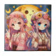 Anime Girl Hippie Moon Girls Giving Peace Sign Ceramic Tile