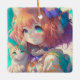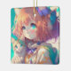 Anime Girl Holding an Adorable Kitten Ceramic Ornament