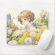 White and yellow watercolor flowers with a pretty anime girl sitting inside. Ai art.