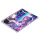 Personalized notebook. Pretty anime girl playing the piano surrounded by stars and flowers in purple, blue and pink.