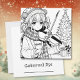 Christmas themed coloring page for kids. Pretty festive anime girl playing the viola in front of a decorated Christmas tree.