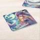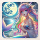 Anime Girl Singing Moonlight Pixie Rainbow Mermaid Square Paper Coaster