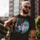 My 11 yo wore adult XL (5’7” 165#). The 8yo is small framed. She wore adult small and tied it in the back. Grandma wore adult large with long sleeve shirt underneath. Tall girl adult medium. Dark haired male adult large. Good quality dark Heather gray, Gildan brand shirt. -it was next up from basic choice and cost about $20 per shirt. Not too thick or thin. Washed and dried well, no major shrinkage. Not see-through. Can wear a bra under it fine. Screen print is just as shown and well done, front and back.