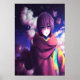 A young anime girl with purple hair outside with stars and cloud in the background. This is a AI generated art.
