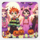 Halloween party stickers for kid's party. Little anime children in costumes.