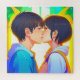 Sweet innocent anime kiss between a boy and girl cartoon art.