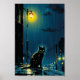 A cinematic rainy night anime scene centered around a quiet street cat under glowing lights.