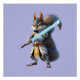 A glowing katana in hand, sleek white and gold armor with blue accents, determination in the eyes, and a fluffed-up tail — these are signs that the anime squirrel samurai superhero is ready for battle. This animal warrior is a perfect blend of the fantasy world and the Japanese culture of fighting and honor.
