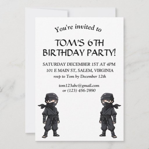You can pick to download your Anime Style Ninja Fighter Boys Birthday Party Invitation from 4 file types: PNG, JPG, Standard PDF, and Print PDF. These 4 file formats have been selected so they cover all your inviting needs. PNG and JPG are great for sending your invitation digitally and PDF and Print PDF are great if you want to print your invitation yourself.